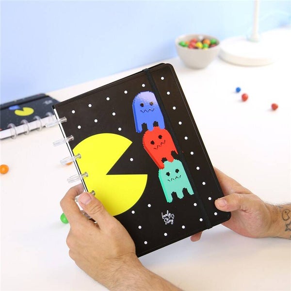 SMART BOOK A5 CON SISTEMA DE DISCOS - 100 HOJAS CUADRICULA 100GR - BLACK - PACMAN-LOVELY STORY